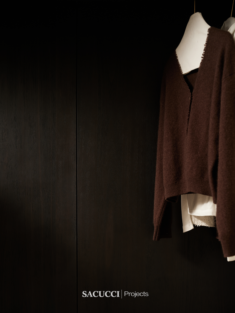 The atmosphere here, simplicity, reveals sophistication. Clothes seem like rare treasures, waiting quietly for the owner to pick them up. Every time the cabinet door opens gently, it's an encounter with style.